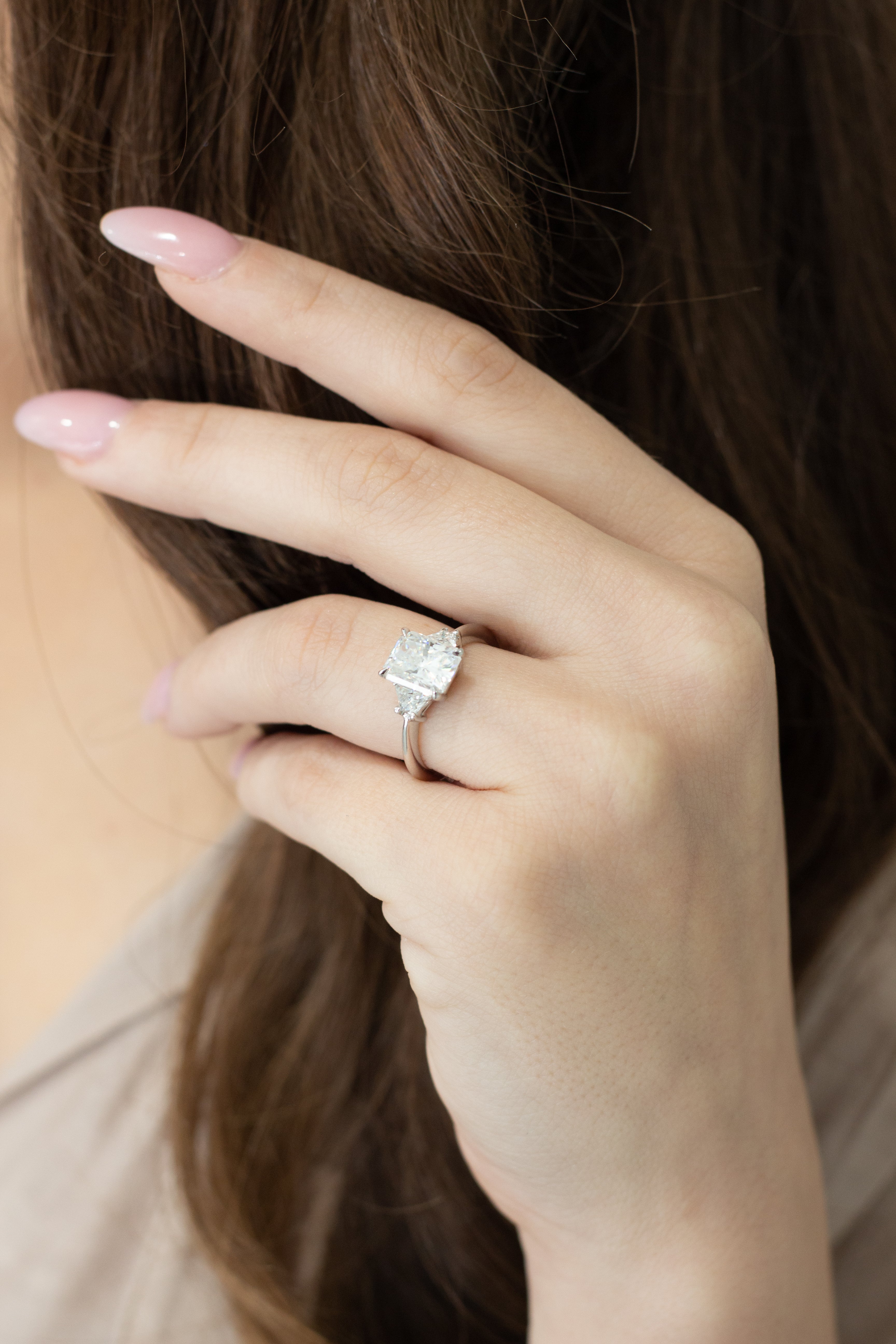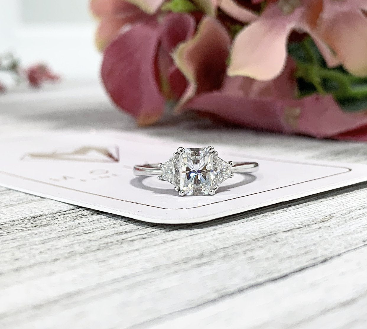 Pictured : Model Finger Size 5 ~ Centre Stone 9x7mm Radiant