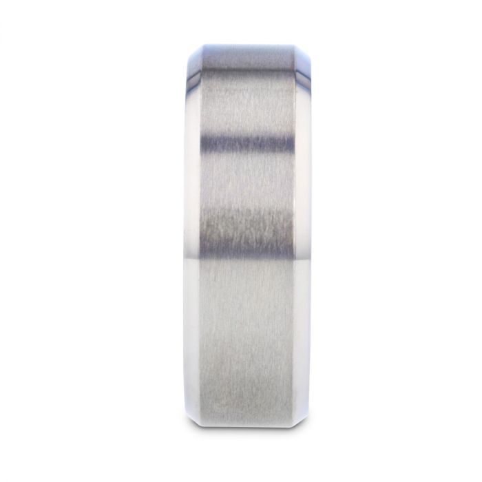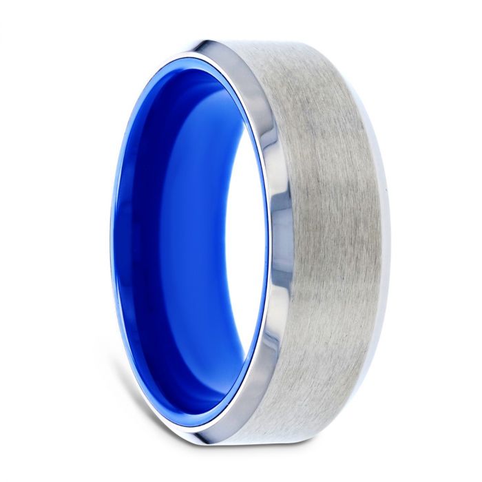 ARCTIC Flat Beveled Edges Titanium Ring with Brushed Center and Vibrant Blue Inside