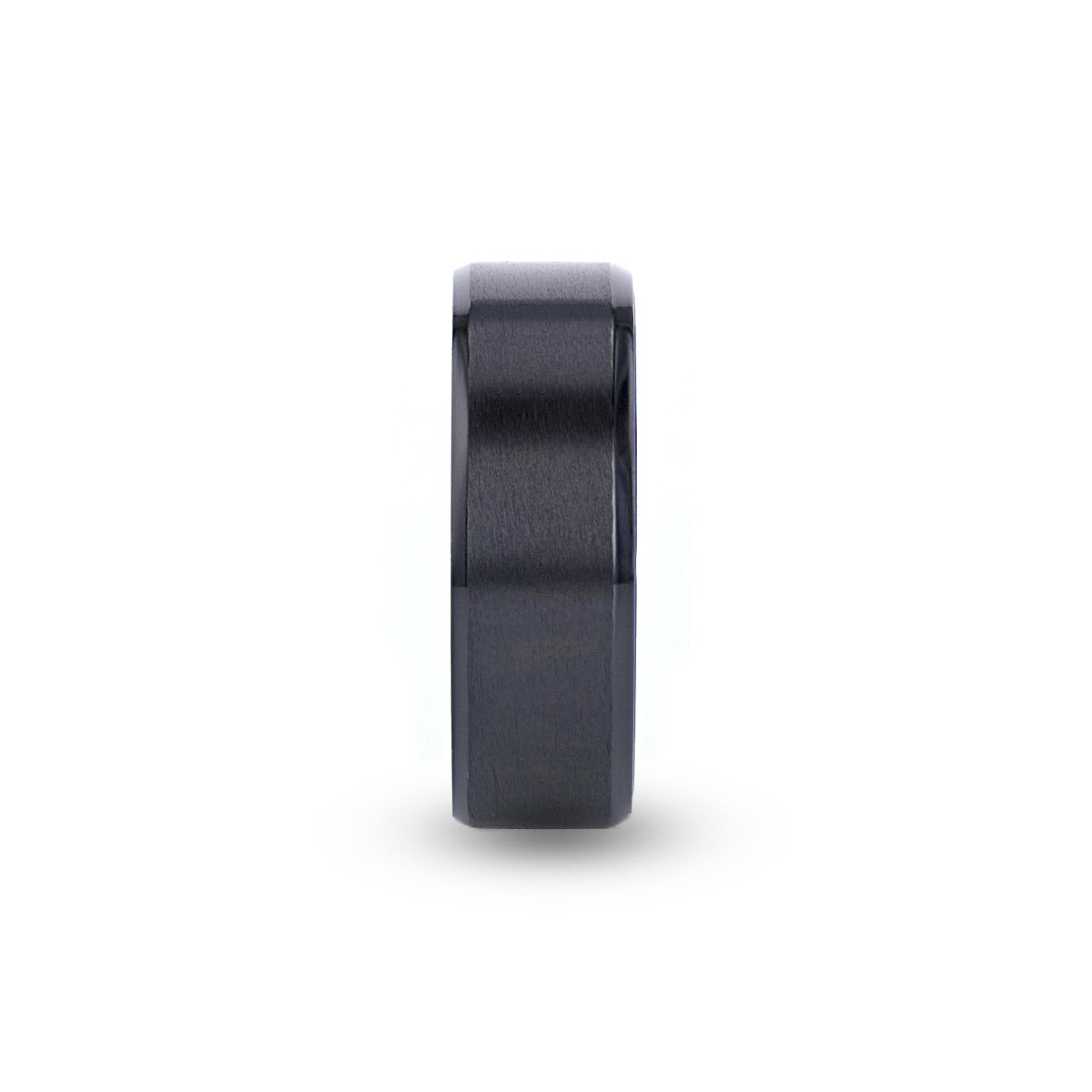 CASTOR Beveled Edges Black Titanium Ring with Brushed Center and Vibrant Blue Inside