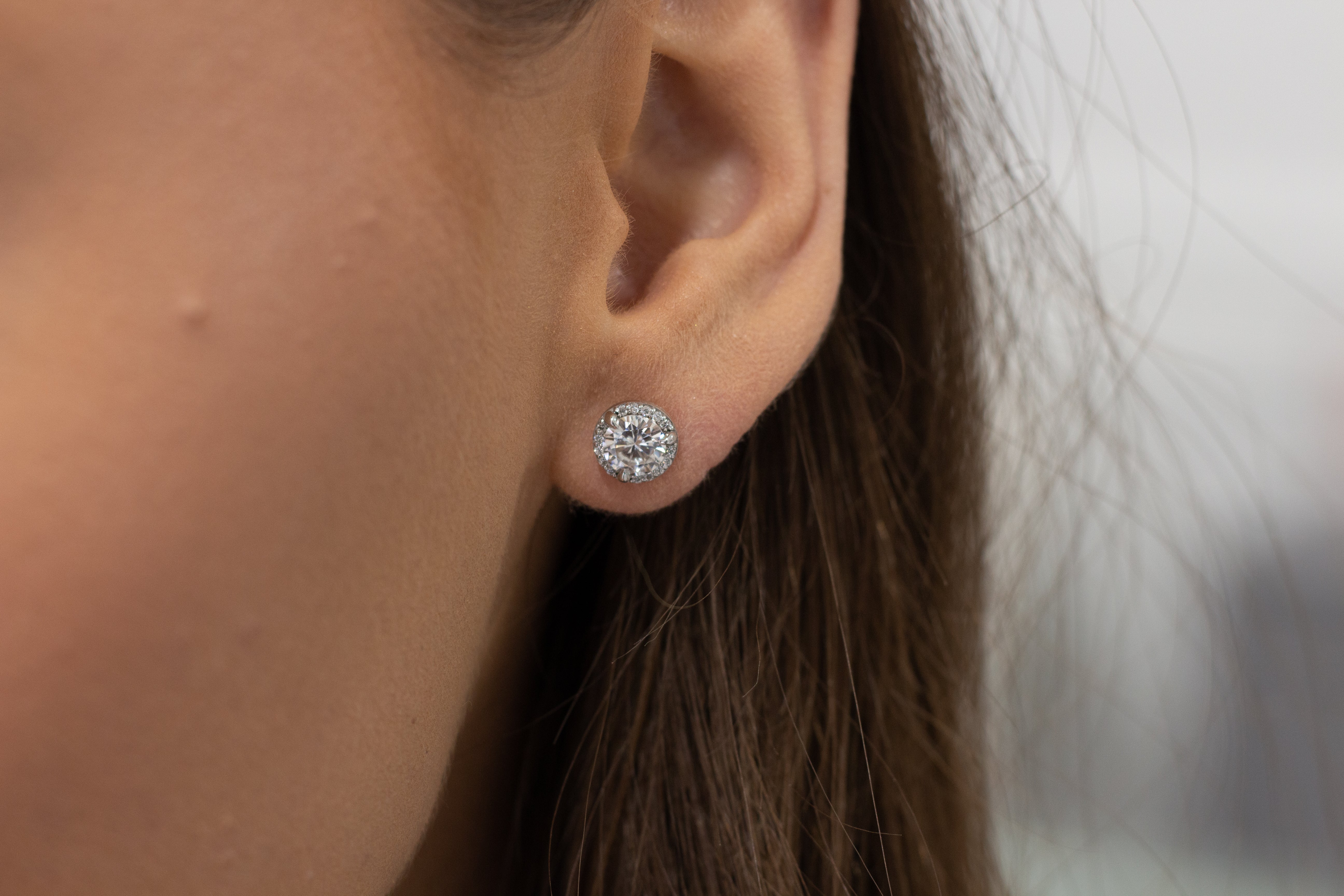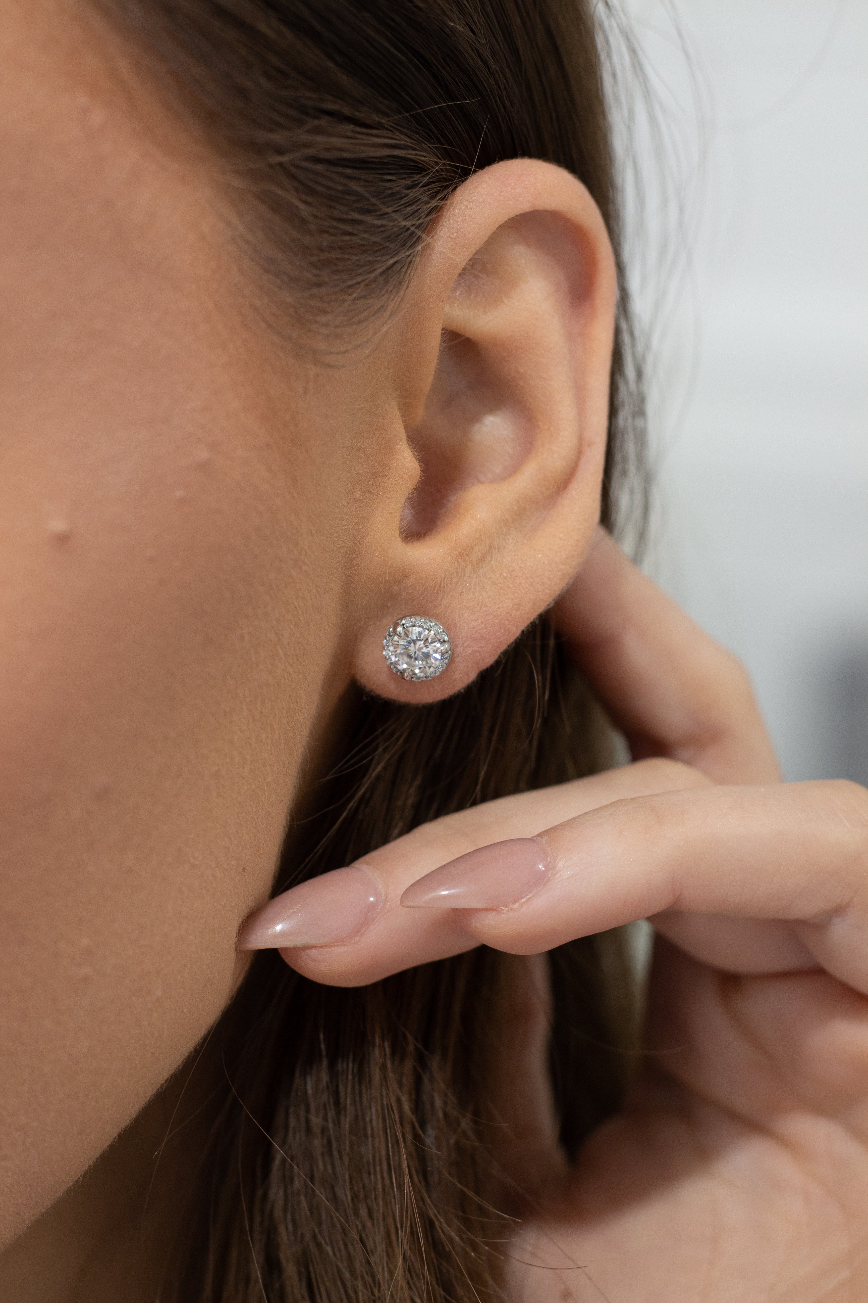 E124 ~ Moissanite ~ Diamond Accent Halo Earrings