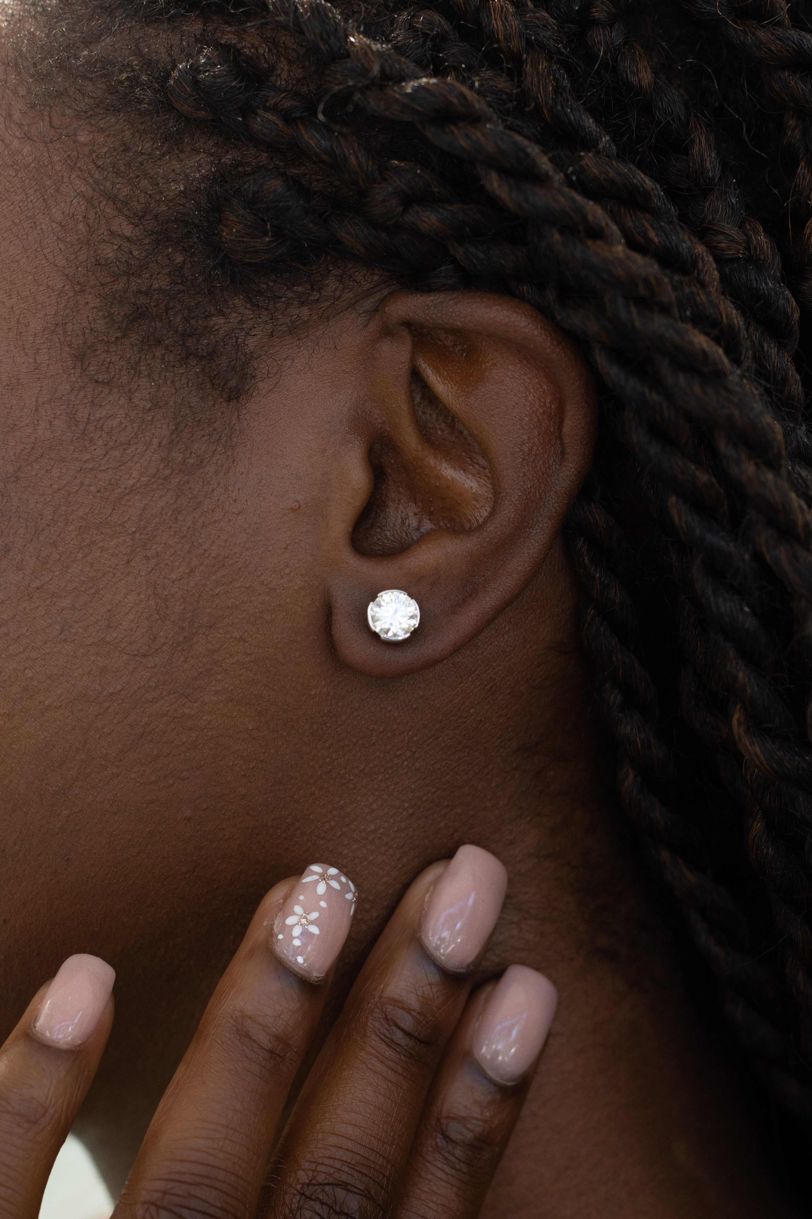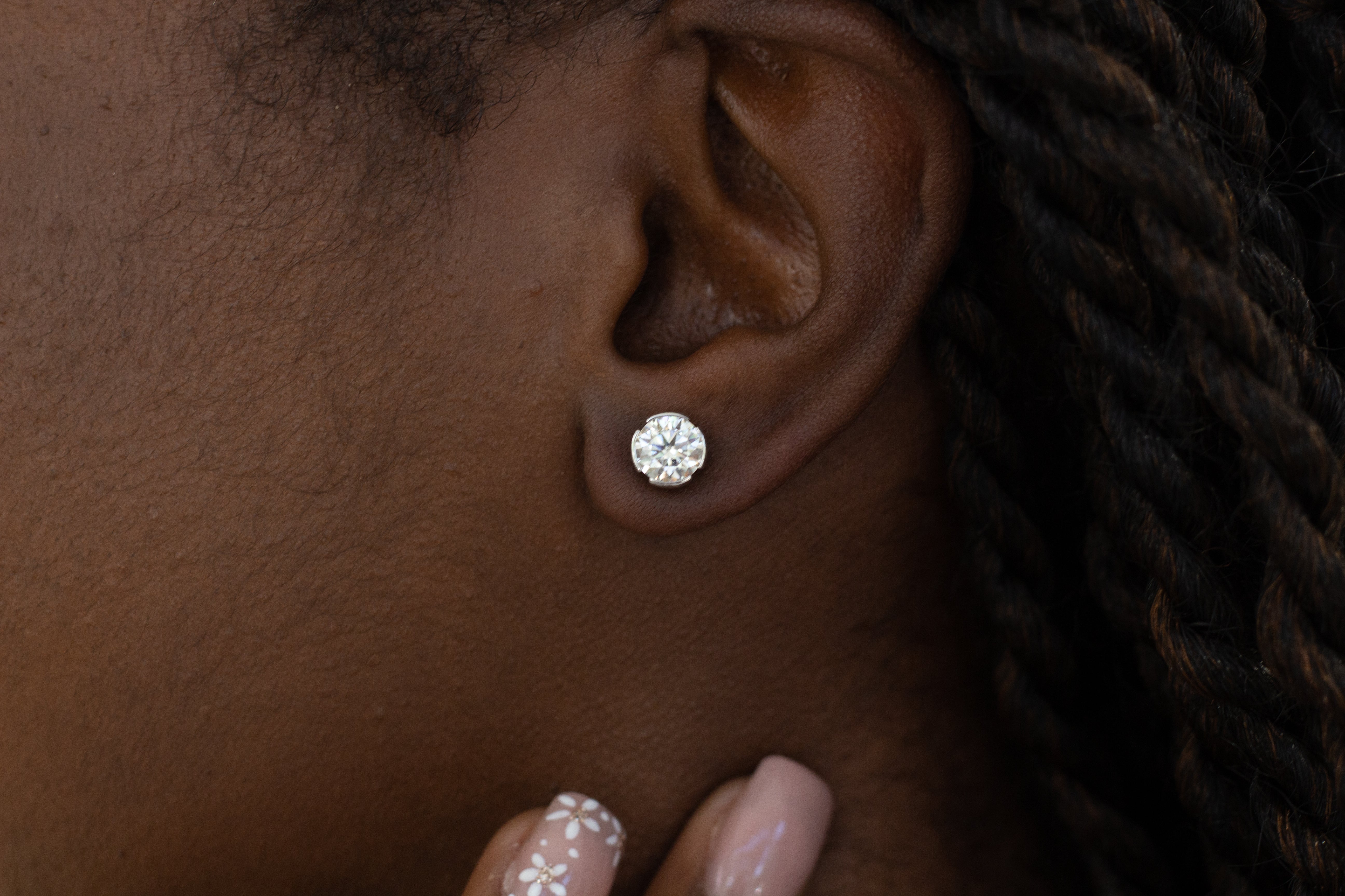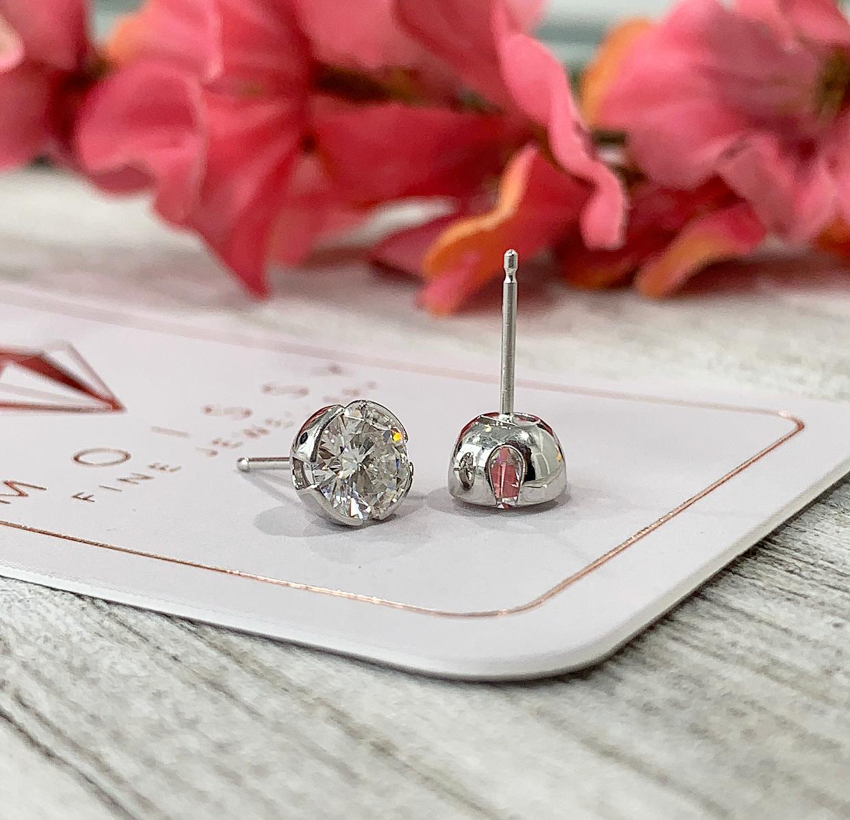 E135 ~ Moissanite ~ Partial Bezel Earring