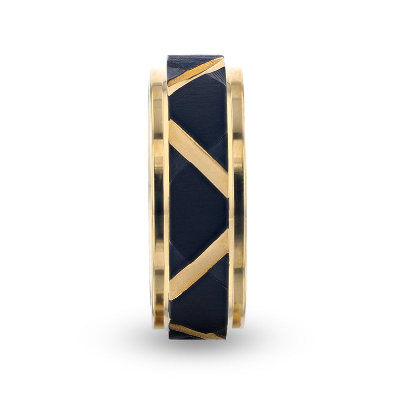 FLEMING Yellow Gold Plated Flat Polished Step Edged Titanium