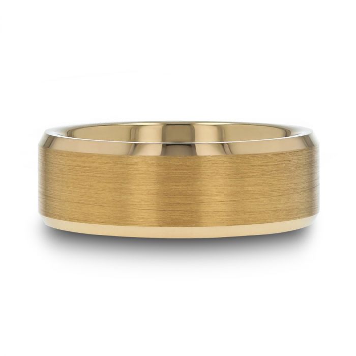 HONOR Gold-Plated Tungsten Beveled Polished Edges Flat Ring with Brushed Center