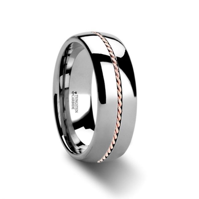 ROSSMOOR Braided Rose Gold Inlay Domed Tungsten Ring