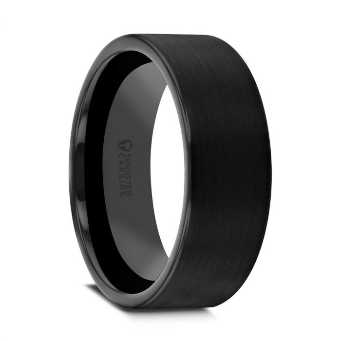 SAN ANTONIO - Flat Brushed Finish Black Tungsten Carbide Band