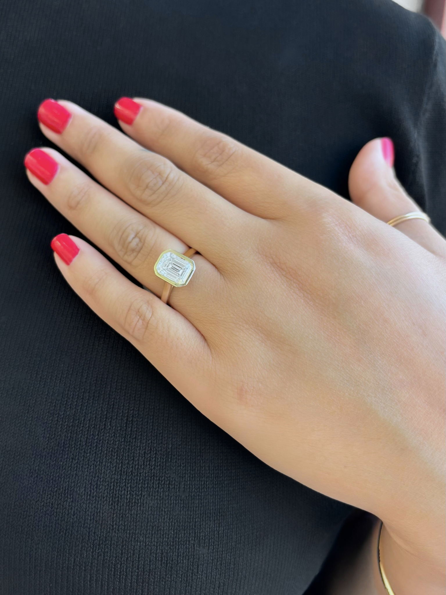 Pictured : Model Finger Size 6.5 ~ Centre Stone 9x7mm Emerald