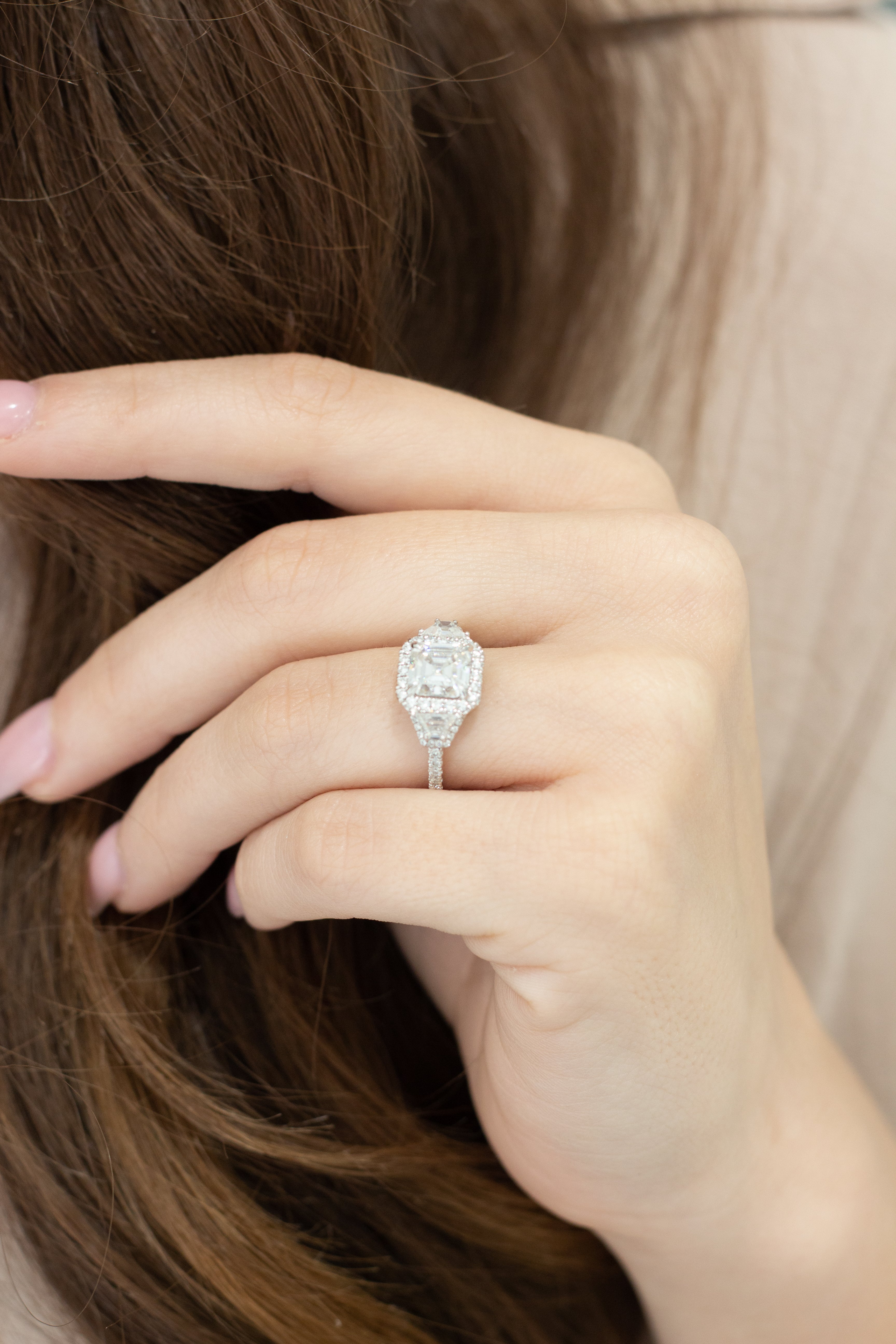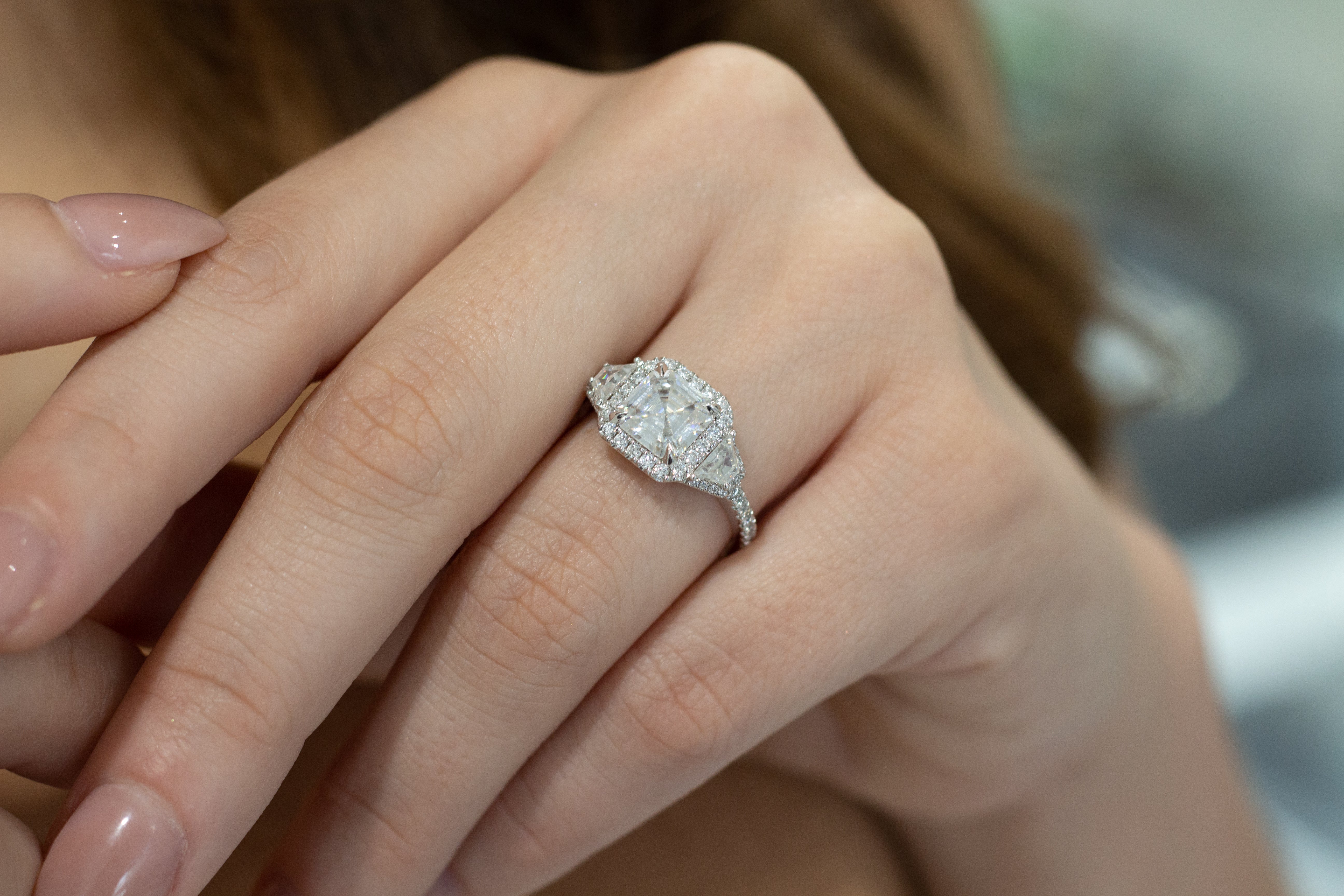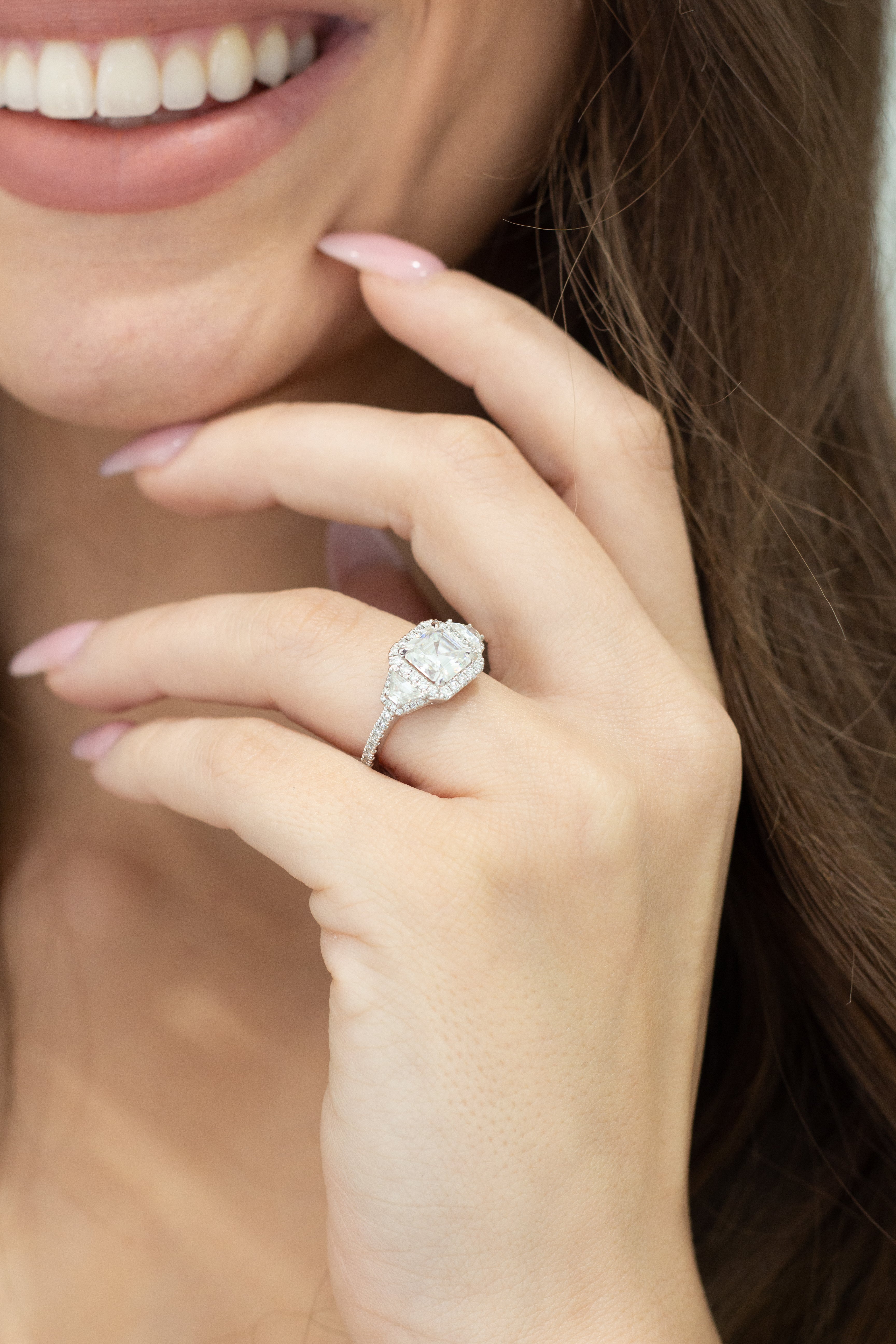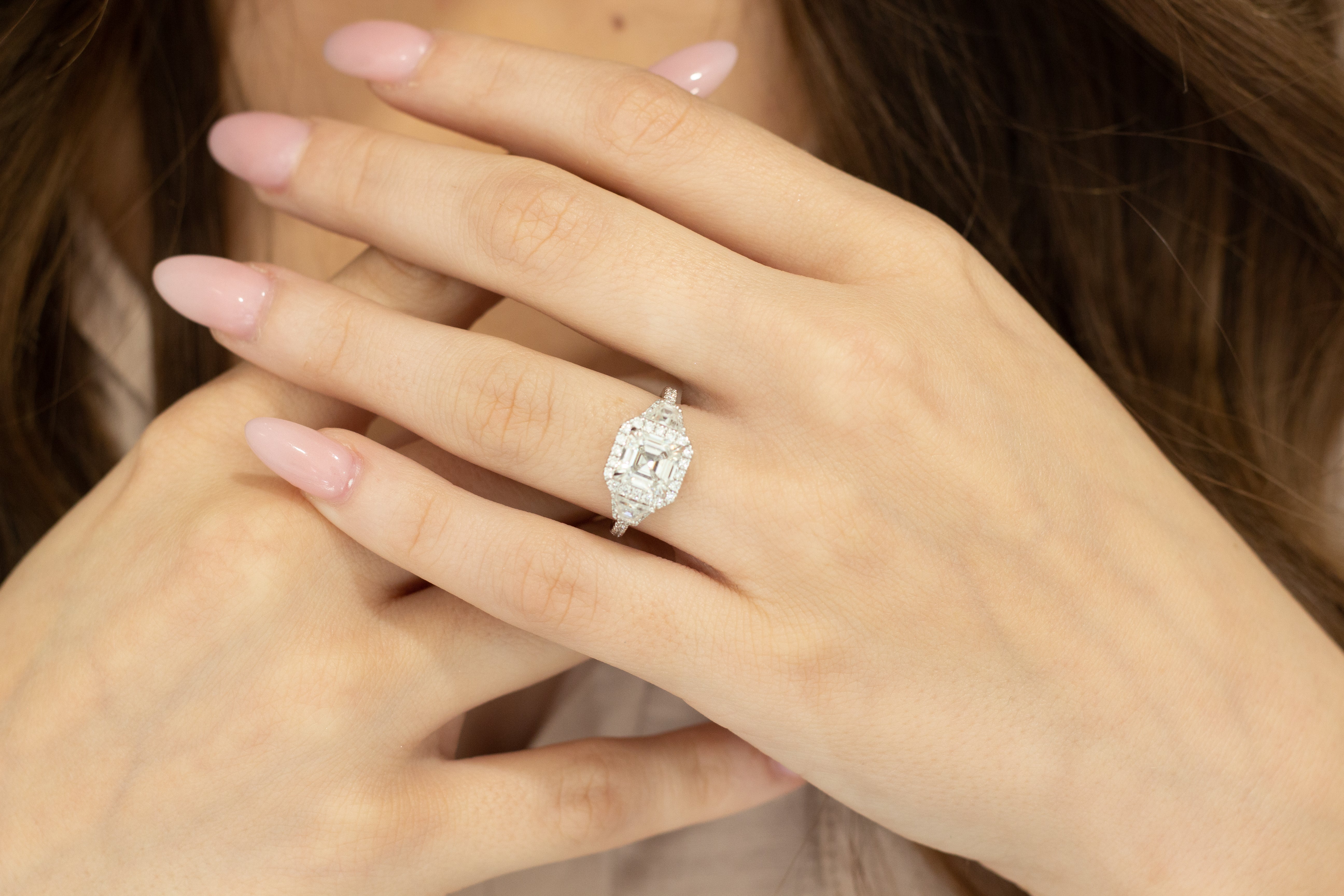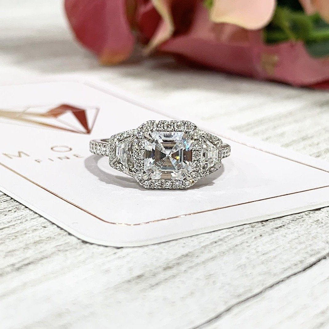 Pictured : Model Finger Size 5 ~ Centre Stone 7.0mm Asscher