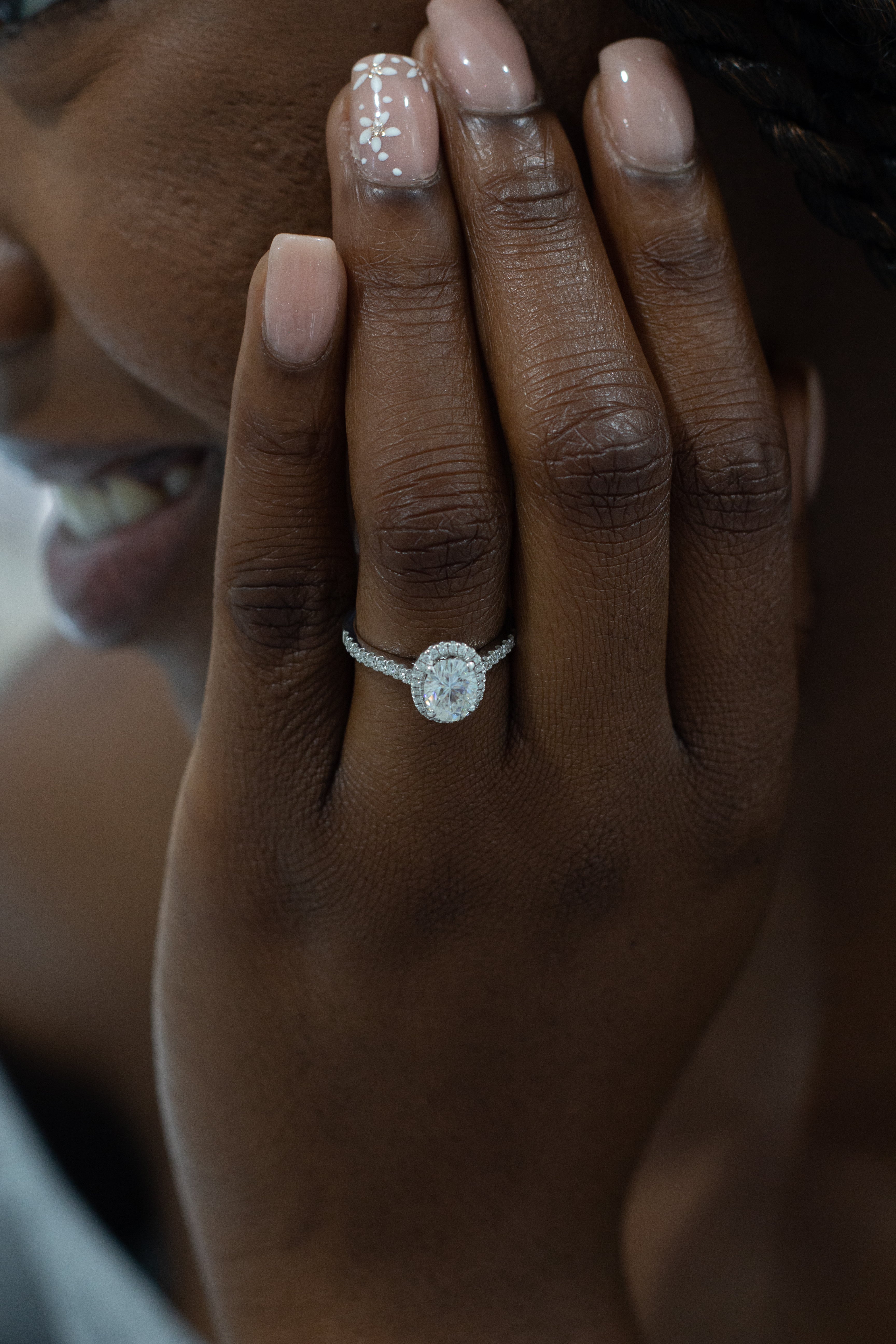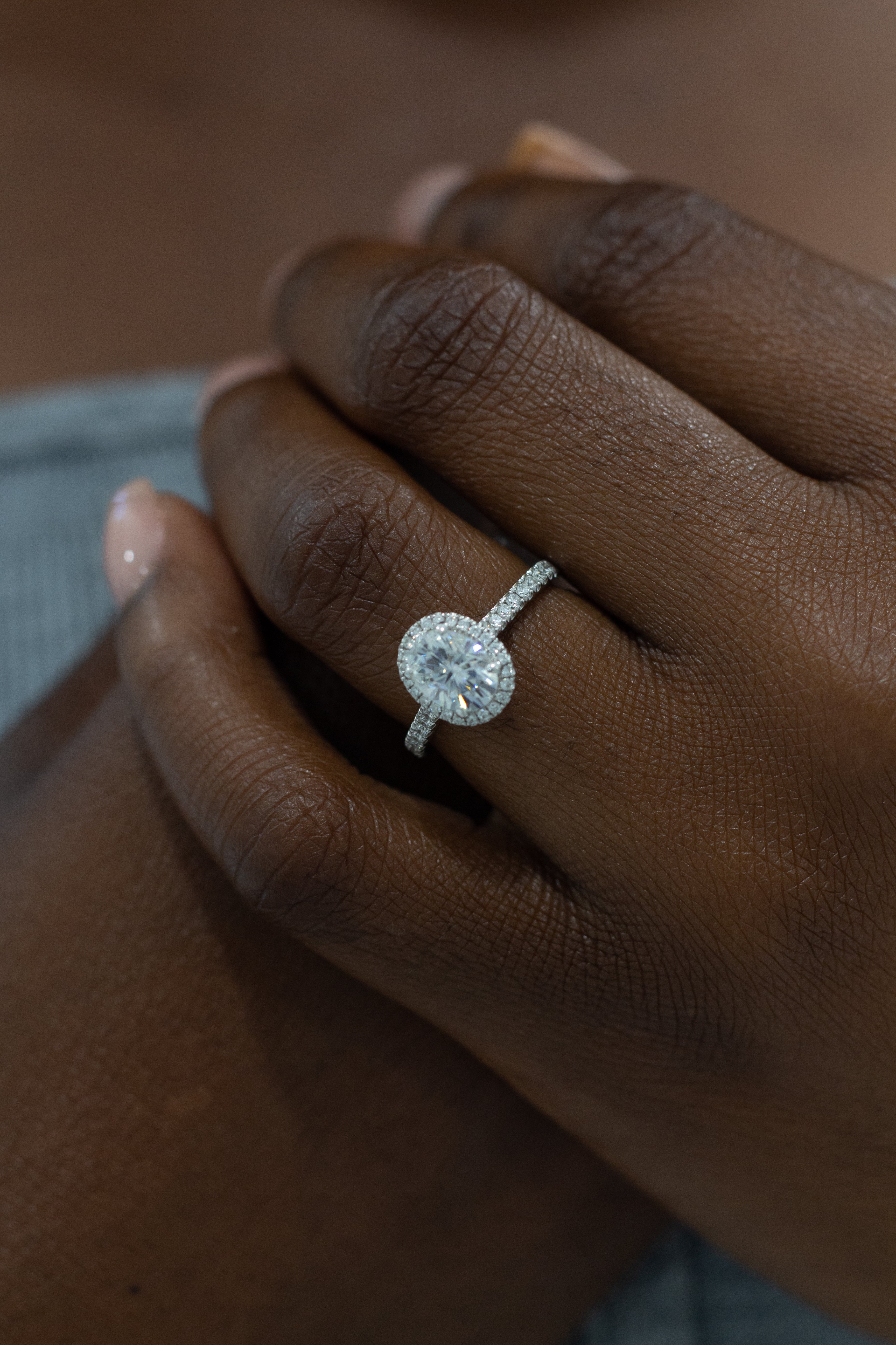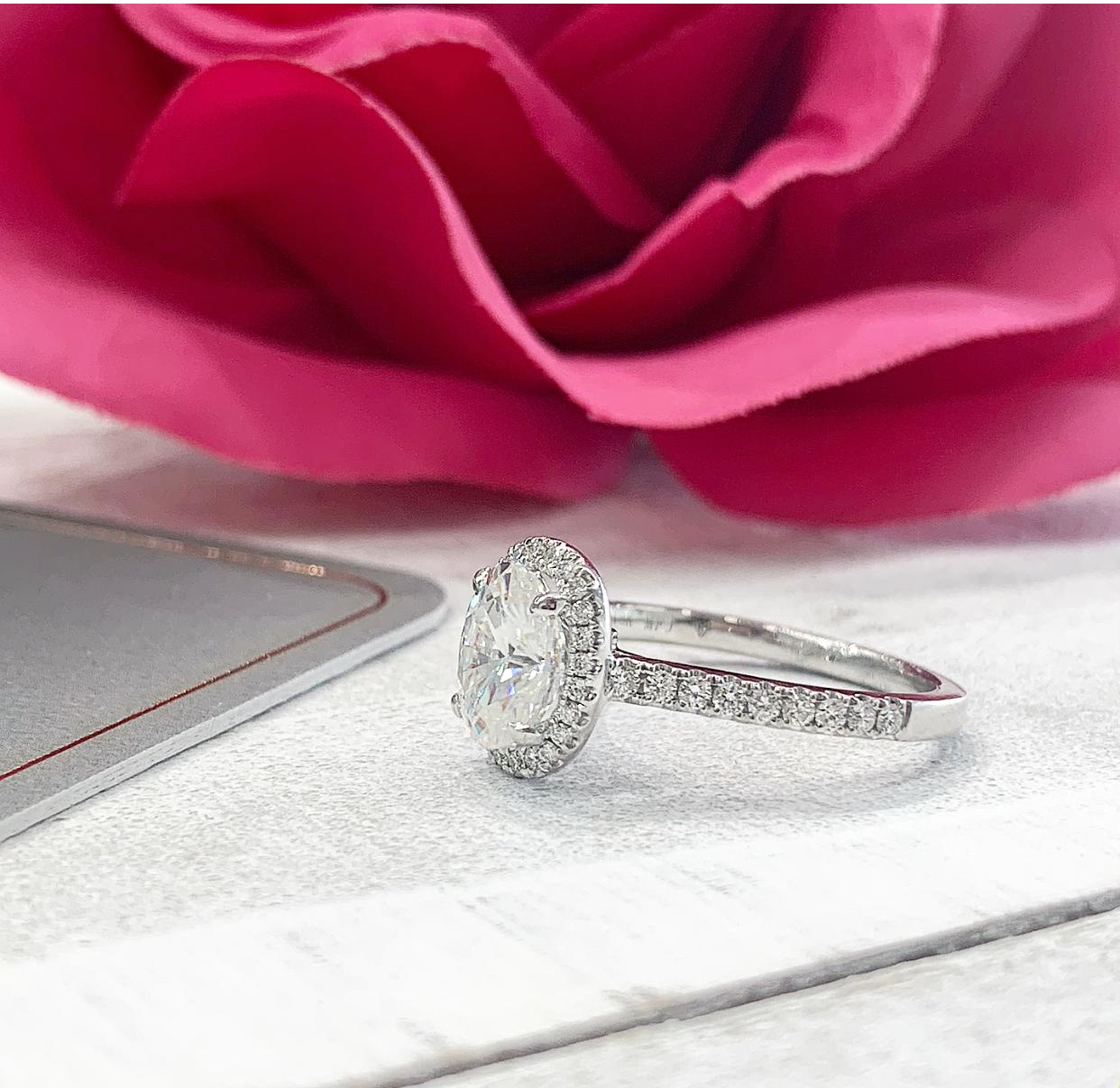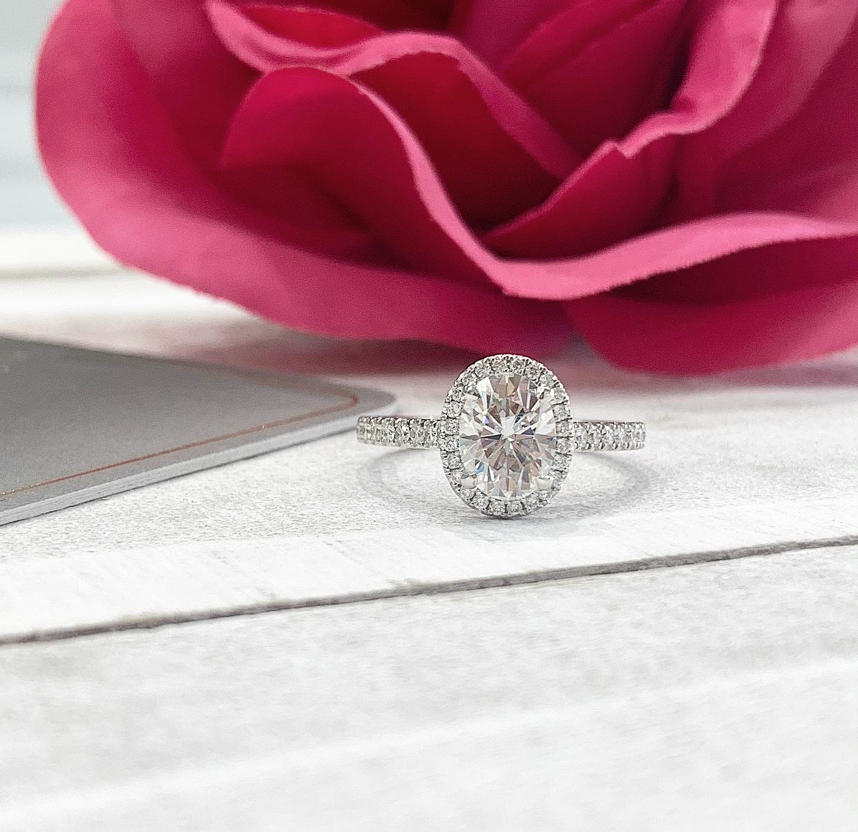 Mariah ~ 18Kw 9X6Mm Oval Moissanite Diamond Halo And Band - Ring