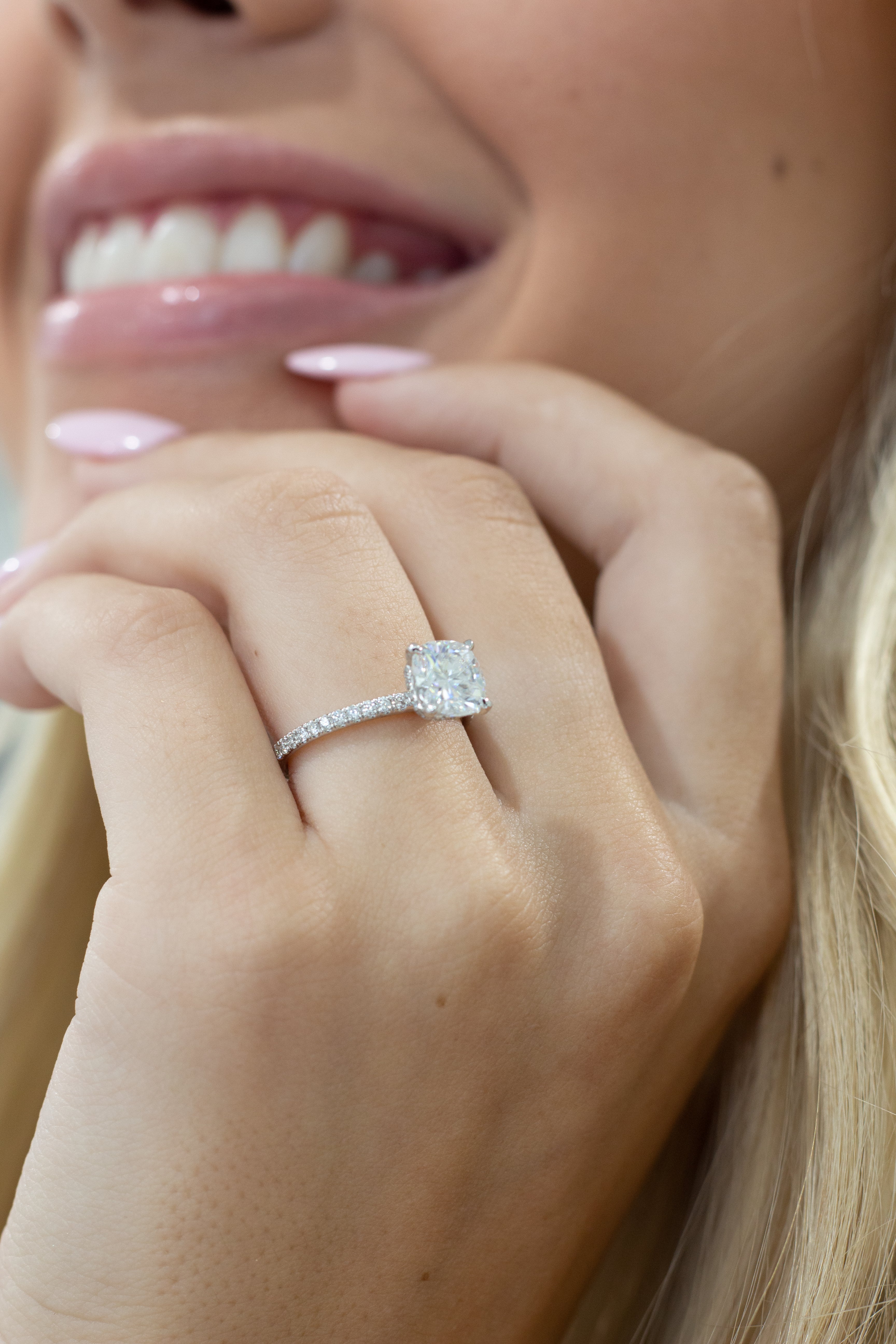 Pictured : Model Finger Size 6 ~ Centre Stone 7.5mm Cushion