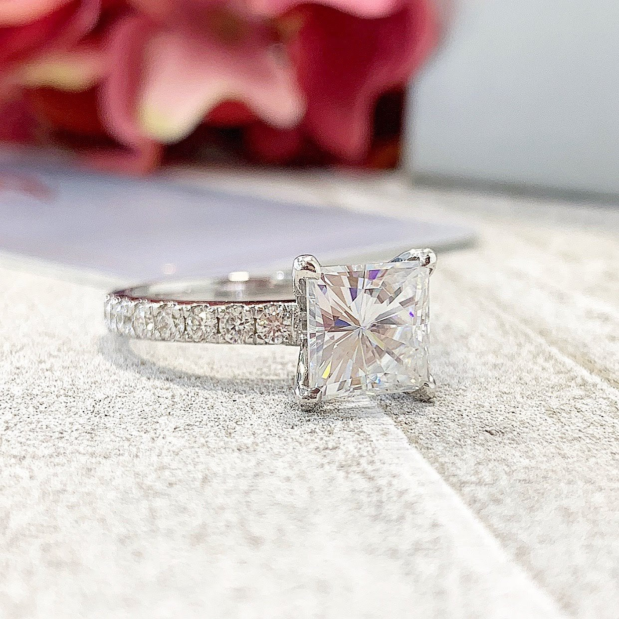Pictured : Model Finger Size 5 ~ Centre Stone 7.5mm Princess