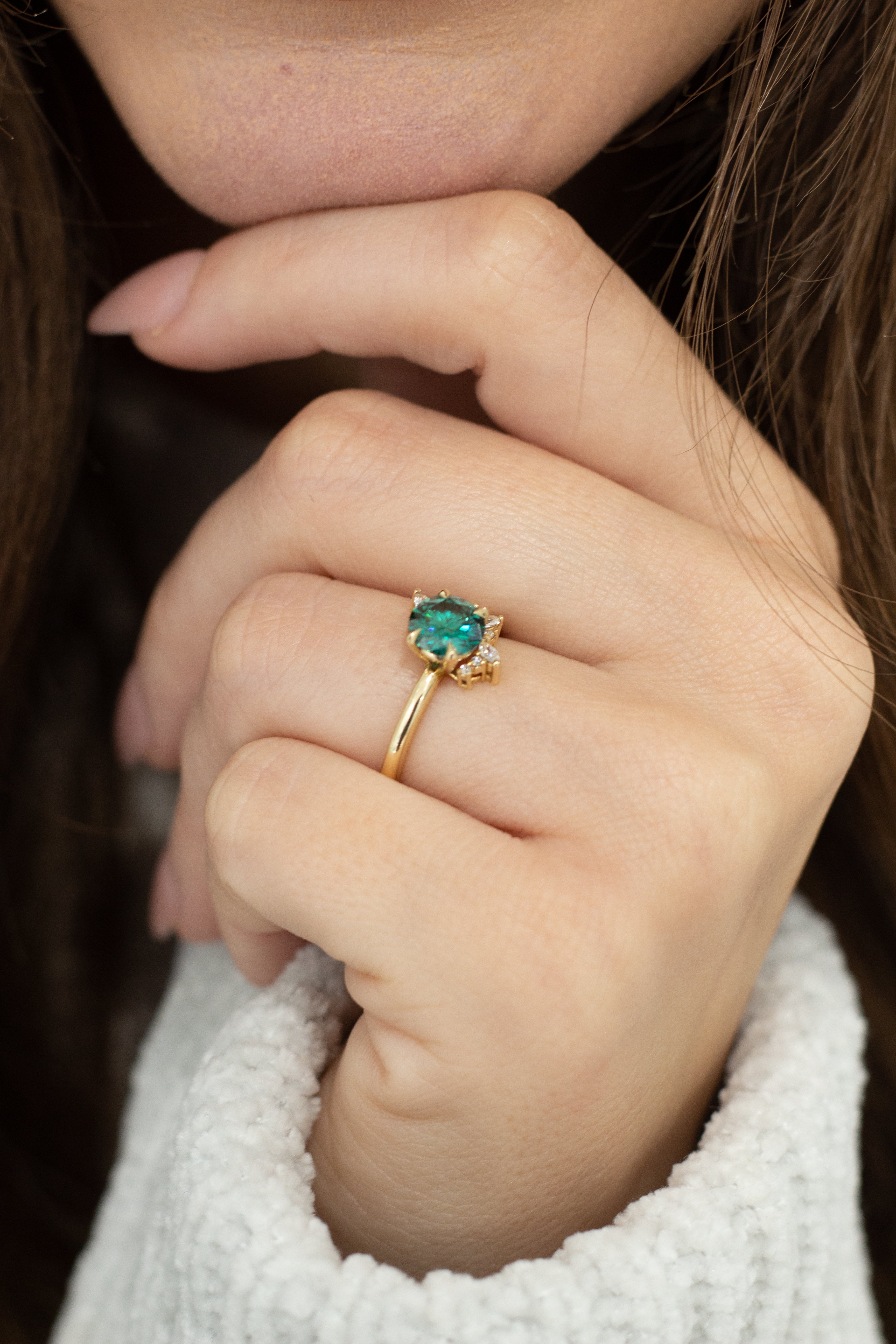 Custom ring orders will be sourced with green moissanite, please note green may vary due to the natural colour variations of green moissanite
