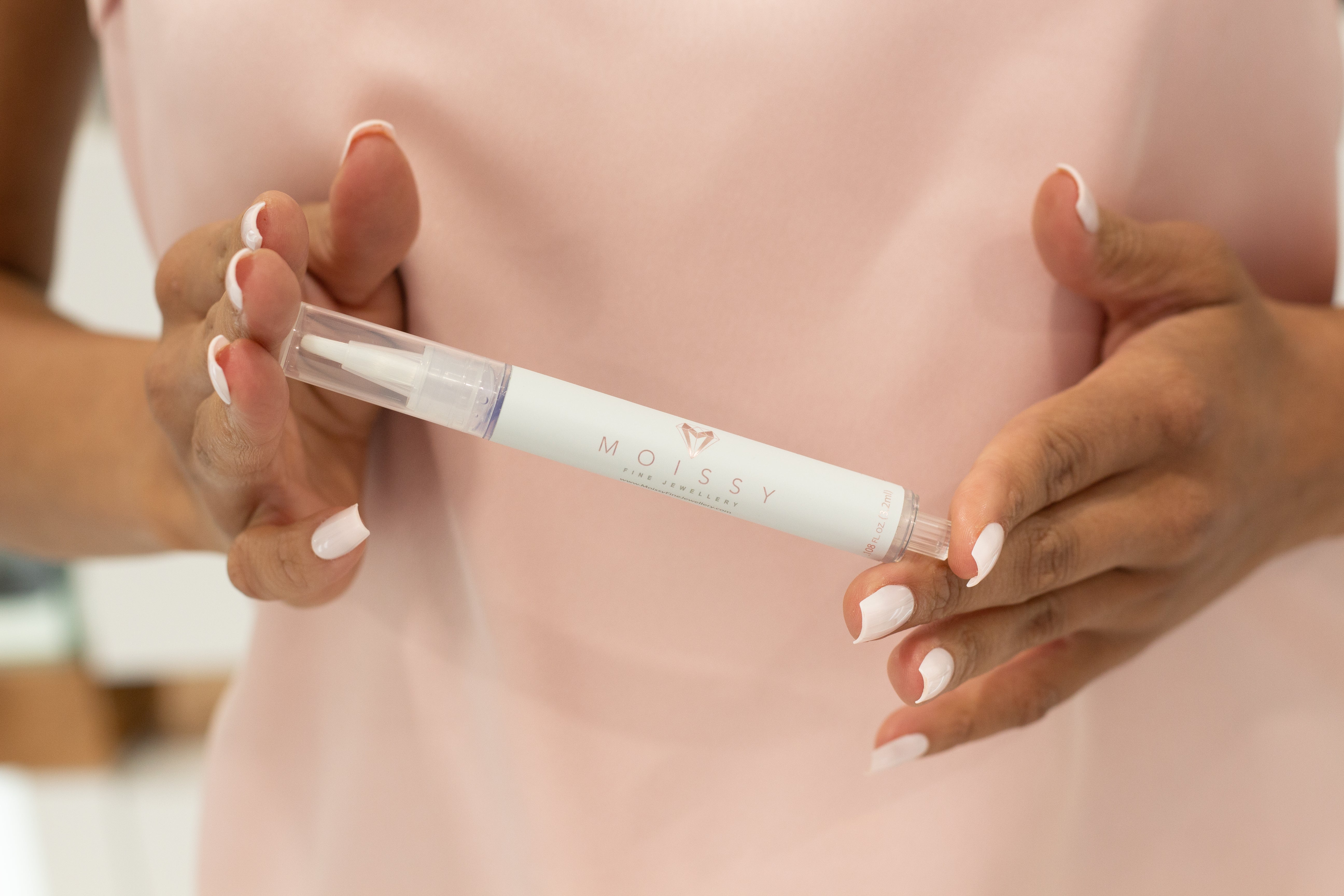 Take your pieces to a Moissy Showroom to have all settings checked . We recommend twice per year. They will ensure that your prongs are in sturdy shape and not in need of maintenance. Have your prongs checked frequently to avoid stones becoming loose and falling out. Unfortunately, we do not cover lost center stones, and your warranty may no longer cover lost side or halo stones. Having your piece professionally cleaned means the jeweler will be able to spot loose stones. If a gem falls out into the ultrasonic cleaning basket, it can be safely found and re-set. Otherwise, most gems may fall out never to be found again. Besides a trip to the cleaners always makes it feel brand new!