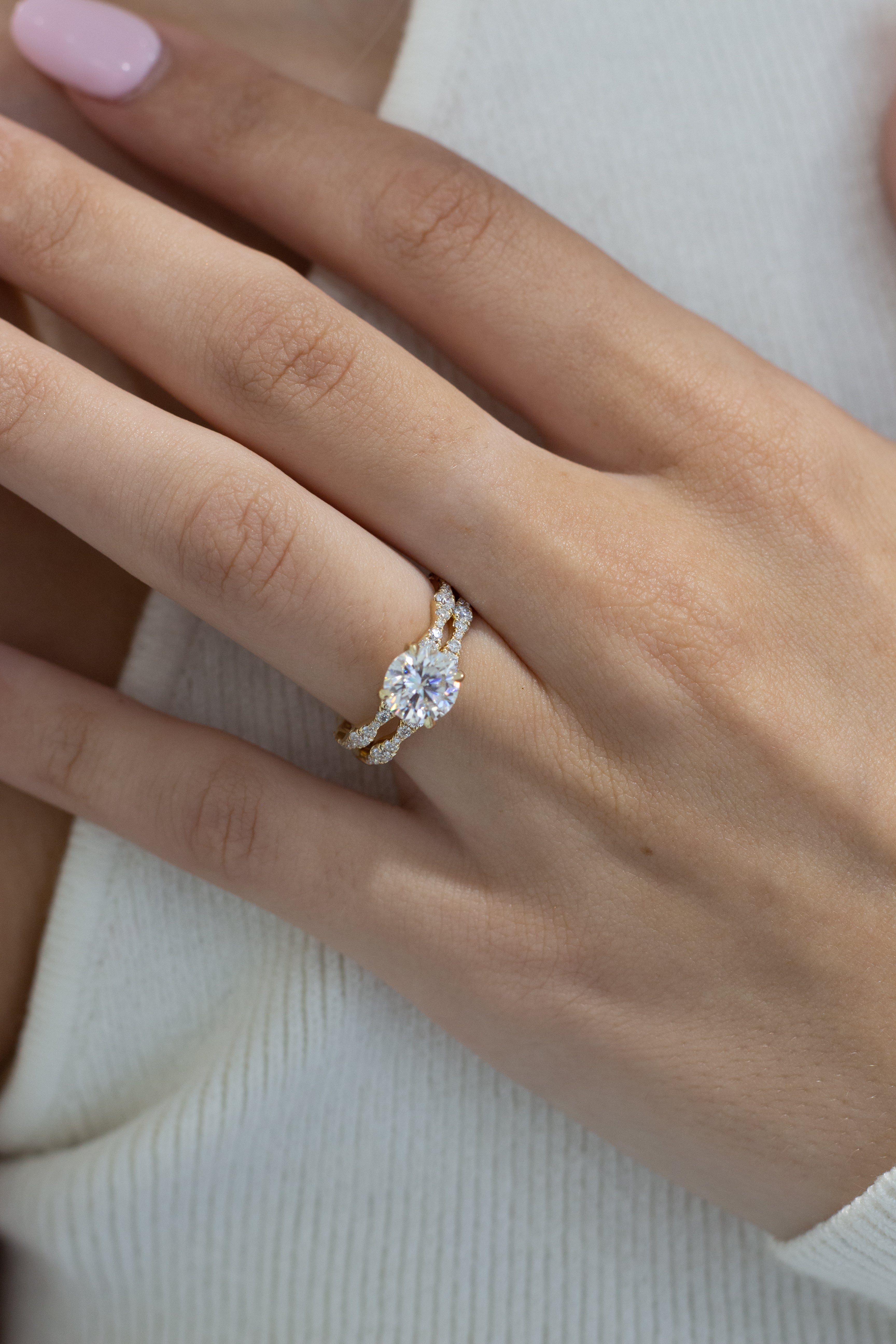Elevate your love story with our exquisite Moissanite engagement rings! As a special treat, we're thrilled to offer you a 10% discount on the purchase of a matching or accent wedding band when you choose one of our stunning Moissanite engagement rings. We believe in making your journey towards forever as perfect as can be, which is why we're excited for you to enjoy the complete set. Cherish the beauty of your commitment with both the engagement ring and wedding band that are truly meant to be together.