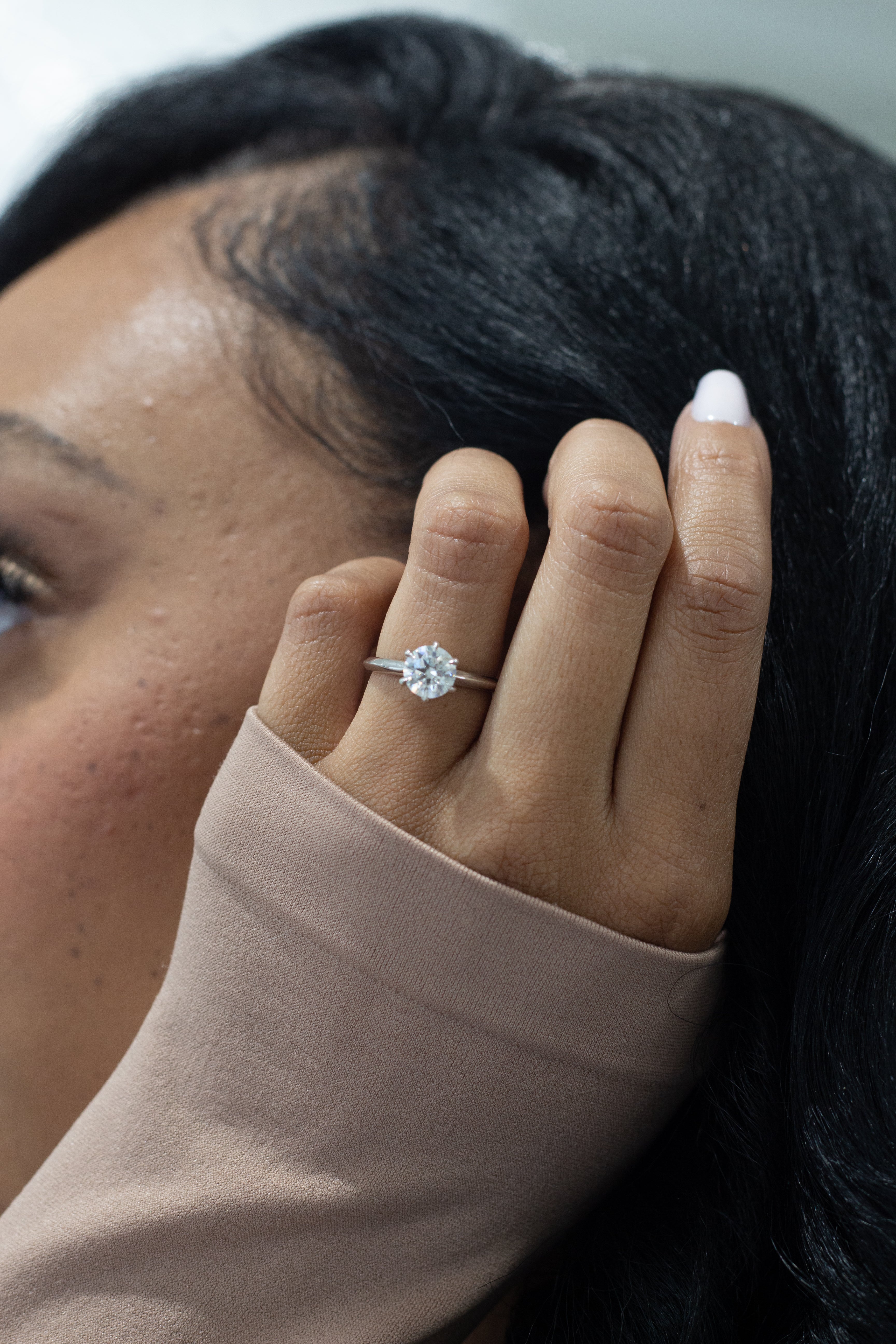 Pictured : Model Finger Size 6 ~ Centre Stone 7.5mm Round